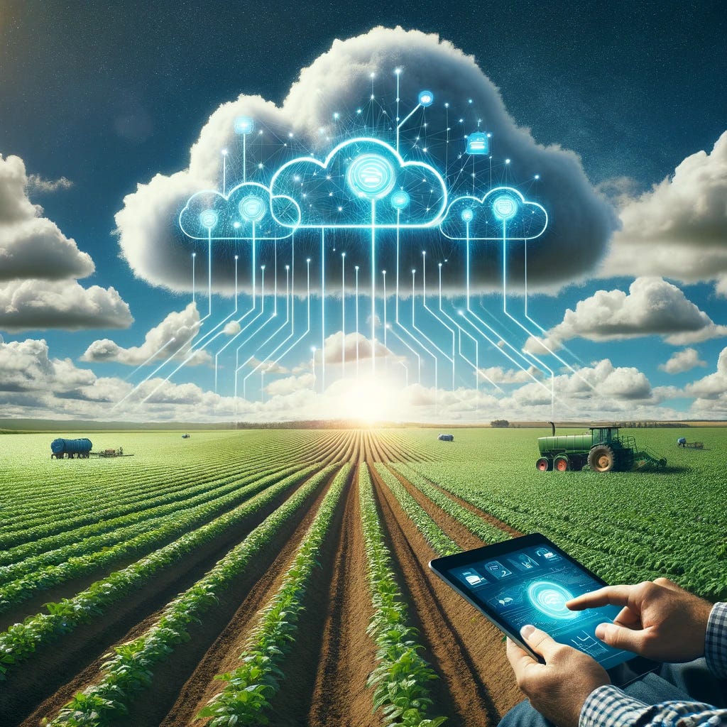 Cloud farming is an agriculture technology that uses cloud computing, IoT, and AI to optimize farming operations.